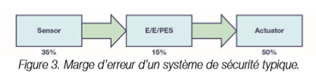 Le Tableau 1 présente un bilan d’erreurs couramment accepté pour l’attribution de la probabilité maximale autorisée de défaillances par heure (FPH). Affiné, ce modèle montre souvent en rouge 1 % du bilan associé à chacune des interfaces. Si la fonction de sécurité est SIL 3, le PFH maximum autorisé est 10-7/h ; par conséquent, l’allocation de 1 % aux interfaces est 10-9/h.