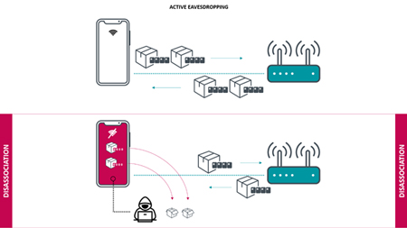 Figure : Un attaquant actif peut déclencher des déconnexions pour capturer et déchiffrer les données.