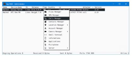 SpyMax permet à l’utilisateur d’accéder à une variété de données sensibles sur le téléphone, et fournit un terminal ‘shell’ et la capacité d’activer à distance le micro et les appareils photo.