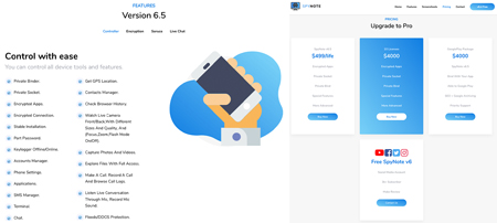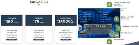 Prix de vente et fonctionnalités de MobiHok à partir de son site officiel, où il possède les mêmes caractéristiques que SpyNote et SpyMax, et peut être acquis pour le modique somme de $75 pour une seule licence.