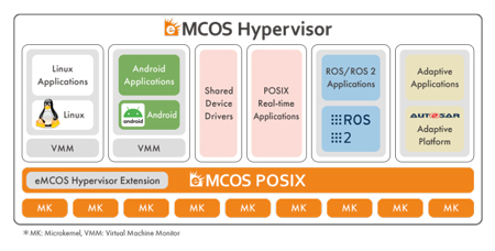 eSOL, spécialiste mondial des systèmes logiciels embarqués et de l’Internet des Objets (IoT), annonce la disponibilité immédiate de son produit eMCOS® Hypervisor, une fonction de virtualisation embarquée novatrice destinée à son système d’exploitation temps réel évolutif (RTOS pour Real Time Operating System en anglais) eMCOS. L’hyperviseur d’eMCOS facilite l’intégration d’applications temps-réel robustes tournant sous RTOS, et d’applications riches en fonctionnalités tournant sur des systèmes d’exploitation (OS) généralistes, l’ensemble fonctionnant simultanément sur la même plateforme matérielle. Une isolation spatiale et temporelle totale (dans des espaces mémoire/temps séparés) est assurée pour permettre la construction d’un système à criticité mixte.