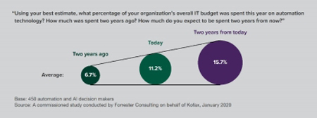 Le rapport 2020 Kofax Intelligent Automation Benchmarking est basé sur une enquête réalisée en janvier 2020 auprès de 450 dirigeants en charge de l’automatisation et de l’IA, et de 450 contributeurs individuels en Amérique du Nord, en Australie, en France, en Allemagne, à Hong Kong, au Japon, à Singapour, en Suède et au Royaume-Uni. Il donne un aperçu de l’état actuel de l’automatisation des entreprises.