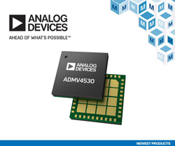 Analog Devices :Convertisseur élévateur en bande Ka ADMV4530 : Ce convertisseur élévateur hautement intégré prend en charge les communications à haut débit par satellite ou par micro-ondes point à point en convertissant les fréquences d’entrée les plus basses en fréquences dans la bande Ka. Il permet d’économiser en taille et en énergie en intégrant un mélangeur, un doubleur de fréquence, un contrôle automatique de gain (AGC) et un oscillateur commandé en tension (VCO) avec un synthétiseur et un amplificateur de commande. Il est complété par des cartes d’évaluation pour accélérer les processus de développement.