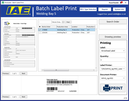 Pour ce faire, IAE a travaillé avec le partenaire de NiceLabel, Cloud Printing Solutions, qui lui a présenté l’équipe de NiceLabel et sa solution Label Cloud. Le Groupe de services professionnels (PSG) de NiceLabel a contribué au projet pour la partie intégration. Il a utilisé le système d’intégration de NiceLabel pour configurer les intégrations aux systèmes ERP et AutoCAD d’IAE. Il a ensuite utilisé le créateur d’applications de NiceLabel pour concevoir les formulaires d’impression rapidement.