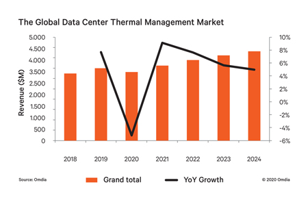 Le rapport d’Omdia, Data Center Thermal Management Report 2020, publié fin 2020 et basé sur des données recueillies en 2018 et 2019, affirme que Vertiv détient une part de 23,5% du marché mondial du refroidissement des datacentres, soit plus de 10% au-dessus de son principal concurrent. Le marché de la technologie de refroidissement des datacenters devrait passer de 3,3 milliards de dollars en 2020 à plus de 4,3 milliards de dollars en 2024, selon Omdia. Vertiv est également en tête du marché mondial des technologies de refroidissement périphérique avec une part de marché de 37,5%, soit plus de 20% au-dessus du deuxième fournisseur le plus important.