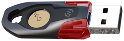 Clé USB de sécurité second facteur d’authentification. Il suffit de rentrer le login et le mot de passe habituels puis de brancher la clé et d’appuyer sur le bouton.