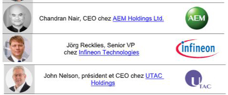 Mobilité, emballage avancé, technologies médicales, gestion des usines, fabrication, MEMS et capteurs, défense des intérêts, diversité et inclusion, ainsi qu’un forum exécutif.