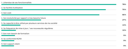 Les professionnels de la Tech ont globalement la main dans le choix de leurs outils. 33% les choisissent totalement, 52% en partie, et seuls 14% se les voient imposer dans leur environnement de travail. Pas étonnant de voir que 59% d’entre eux testent régulièrement de nouveaux outils pour mieux s’équiper. Trois critères de choix s’imposent particulièrement : l’étendue des fonctionnalités proposées (78%), la facilité d’utilisation (71%) et le coût (66%).