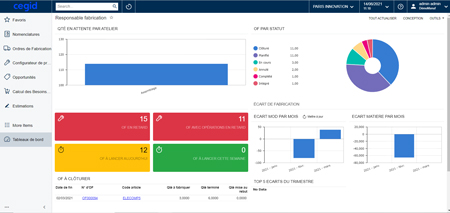 Adapté à tout type d’activité industrielle, ce nouveau module de gestion de production permet un pilotage précis de la fabrication sur stock, à la commande, sur-mesure, par projet, en continu ou par lot. Il facilite la gestion flexible des configurations produit, la gestion des modifications et garantit la traçabilité. La planification avancée de la production en lien avec les besoins d’approvisionnement et les achats permet l’optimisation du stock, des délais et des coûts de production, qui viennent naturellement alimenter les prévisions financières.