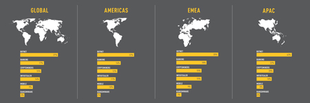 Catégories de cyberattaques par région au premier semestre 2021 :