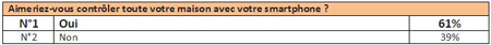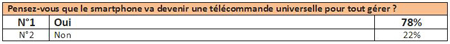 A la question "Pensez-vous que le smartphone va devenir une télécommande universelle pour tout gérer ?", 78% des personnes interrogées répondent "oui". Les utilisateurs sont donc très motivés pour obtenir davantage de services connectés afin de transformer leur smartphone en véritable télécommande universelle.