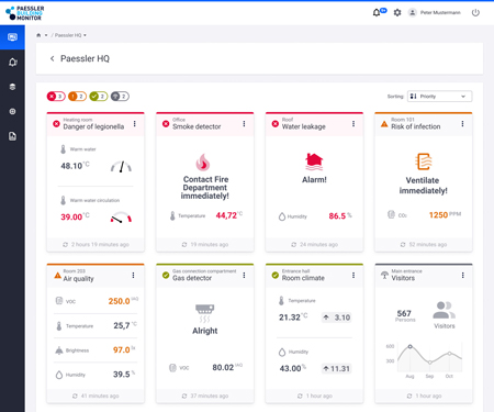 Cette supervision s’appuie sur les données du bâtiment que le système collecte à distance via la technologie LPWAN. Des capteurs IoT sans fil installés localement dans les bâtiments fournissent les données de mesure utilisées pour déterminer les états. Il n’est ainsi plus nécessaire d’avoir recours à la méthode chronophage de recueil des données analogiques sur site. Paessler Building Monitor affiche tous les états dans un tableau de bord intuitif et convertit les données en informations utiles pour l’utilisateur.