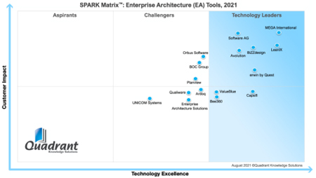 Le rapport de Quadrant Knowledge Solutions fournit une analyse concurrentielle des principaux outils d’architecture d’entreprise sous la forme de son classement propriétaire SPARK Matrix ™.