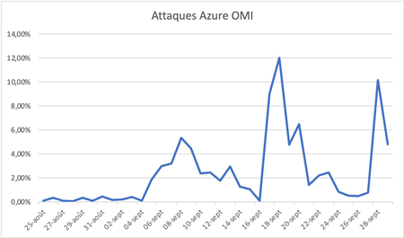 Deux vulnérabilités récemment identifiées sont les dernières évolutions de ce genre d’attaques : une vulnérabilité d’injection OGNL d’Atlassian Confluence, et une vulnérabilité affectant l’infrastructure de gestion ouverte (OMI) d’Azure. Les chercheurs de Barracuda ont analysé les attaques tentant d’exploiter ces vulnérabilités sur une période de 45 jours, en août et septembre 2021. Ils ont constaté des pics d’attaques provenant de plus de 500 IP uniques.