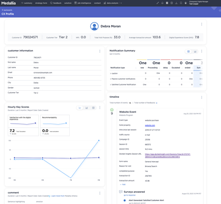 Identifier les problèmes d’expérience digitale et quantifier leur impact sur le chiffre d’affaires : Medallia fournit une visibilité en temps réel sur les ruptures d’expérience, des analyses du coût potentiel de ces problèmes en termes de chiffre d’affaires, ainsi que des feedbacks et suggestions directs des clients sur les améliorations à apporter.