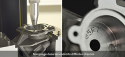 Couvrir les différences de hauteur : D’une amplitude de 16mm, le stylet 3D permet de marquer « en escalier », sur différents niveaux d’une même pièce et ce, en un seul cycle. Sans l’aide de vérin, sans bouger la tête de marquage, il permet d’aller graver dans des gorges, des creux, des endroits difficilement accessibles !