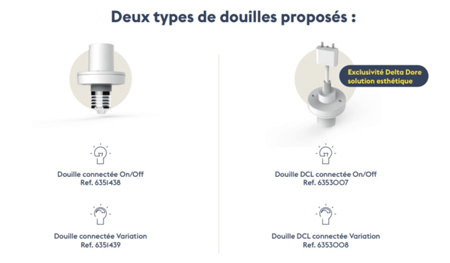 les douilles connectées pour lampes à poser et lampes de table sont proposées en mode Marche/Arrêt ou variation,