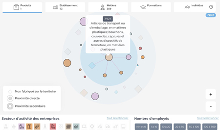 L’Atlas des Synergies productives se base sur l’analyse fine des données ouvertes (bases INSEE, SIRENE, ROME, Pôle emploi, douanes et la modélisation du tissus productif issue des travaux de recherche de l’Université d’Harvard).
