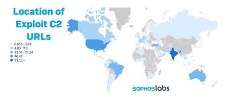 Par exemple, la télémétrie de Sophos montre que 59% des tentatives d’exploit essaient d’établir un contact entre Log4j et des adresses Internet en Inde. Plus de 40 % des tentatives d’exploit essaient de contacter Log4j avec des adresses Internet aux États-Unis.