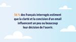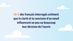 Les consommateurs français apprécient les e-mails simples, concis et faciles à comprendre. Cela montre qu’une entreprise sait comment communiquer avec son public. C’est particulièrement vrai pour les objets des e-mails, qui, selon 56 % des répondants français, influencent quelque peu ou fortement leur décision de l’ouvrir. Les destinataires français souhaitent que les objets donnent une idée de ce que contient le corps de l’e-mail, afin de pouvoir déterminer si celui-ci mérite leur temps et leur intérêt (ou non).