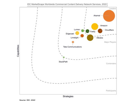 IDC prévoit que le marché commercial des CDN atteindra 18,8 milliards USD d’ici 2025, avec un taux de croissance annuel composé de 17,1 % sur cinq ans, et qu’il s’articulera autour de cinq domaines de services : vidéo over-the-top, courrier électronique et données, jeux en ligne, partage de fichiers et sécurité.