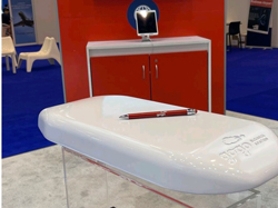 Quickparts a recommandé la stéréolithographie (SLA) pour réaliser le prototype afin d’accélérer la production et de s’assurer que Gogo recevrait une pièce finie à temps, qui réponde à ses besoins. La technologie SLA permet de produire des pièces prêtes à être exposées, qui ressemblent fidèlement à la pièce de production finale. Le prototype est de grandes dimensions, 60,2 × 24,6 × 6,1 cm, et fabriqué en matériau Accura 25. Gogo Business Aviation avait également besoin que la pièce soit finie avec une peinture blanc brillant, sans texture.