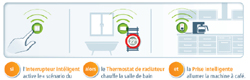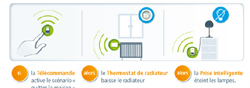 Enfin, le Home Control de devolo c’est aussi le sujet des économies d’énergie. Avec une gamme composée d’un thermostat de radiateur et d’un thermostat d’ambiance, il est possible de régler précisément la température de chaque pièce, de programmer des plages horaires en fonction de la présence de personnes dans la maison et tout cela depuis chaque radiateur individuellement ou plus largement depuis son Smartphone n’importe où dans le monde. Les thermostats réalisés en collaboration avec Danfoss communiquent sans fil avec le reste des composants du système Home Control devolo et remplacent facilement les modèles conventionnels des radiateurs. Sans aucune compétence en plomberie ou en domotique, il est possible de profiter d’une température idéale à tout moment. Et comme tous ces modules communiquent entre eux grâce à la technologie sans fil Z-Wave, on peut alors par exemple, augmenter la température de la salle de bain à son réveil, en appuyant sur le même bouton intelligent qui a lancé votre cafetière et allumé la chaîne Hi-Fi.