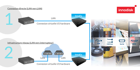 Avec son nouveau module d’extension virtuelle I/O (entrées/sorties) appelé InnoEx, le groupe Innodisk ouvre la voie et permet aux entreprises internationales de déployer efficacement leurs différentes applications intelligentes par l’intégration du logiciel et du hardware en ayant recours à la technologie virtuelle d’extension I/O. Cette intégration permet ainsi aux entreprises de maîtriser leur budget d’équipement informatique et de résoudre les problèmes posés par des circuits complexes présentant des difficultés en termes de découpage et d’implantation. Une extension est possible grâce à la technologie virtuelle I/O qui fait appel à un seul ordinateur et à une seule ligne réseau, permettant ainsi de se connecter en série aux modules InnoEx afin d’obtenir une extension flexible qui peut ainsi adapter le nombre de terminaux et la distance entre ces derniers.