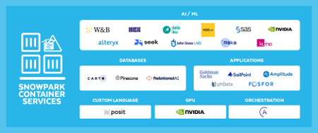 Snowflake s’est associé à NVIDIA, Alteryx, Astronomer, Dataiku, Hex, SAS, et plus encore, pour donner aux clients un accès sécurisé, facile et gouverné à une large gamme de produits et de solutions au sein de leur compte Snowflake, à l’aide de Snowpark Container Services.