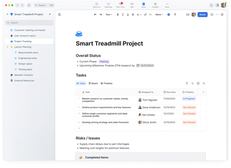 Des wikis et des dossiers partagés : les utilisateurs peuvent créer des wikis pour relier toutes les pages et les intégrer dans une arborescence visuelle, afin que l’équipe puisse instantanément voir comment les informations sont connectées entre elles. Il est également possible de regrouper les pages selon des hiérarchies pour organiser les docs avec des dossiers et accéder à plus d’informations.