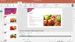 L’éditeur de présentation intègre la fonction « Masque de diapositives » qui permet d’appliquer rapidement la même mise en page à plusieurs diapositives. D’autres nouveautés pour les diapositives incluent un panneau d’animation pour afficher les effets appliqués sur la ligne de temps, ainsi qu’un panneau de diapositive de droite plus convivial avec les paramètres étendus.