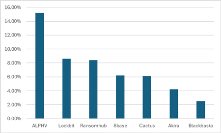 Les différences entre les groupes sont souvent subtiles. Mais il y a des exceptions. ALPHV/BlackCat a publiquement incité ses partenaires à cibler spécifiquement les hôpitaux et les établissements de santé en guise de représailles après l’opération de police qui avait visé l’infrastructure du groupe. Résultat : le pourcentage de victimes dans le secteur de la santé a dépassé les 15 % au cours des 12 derniers mois.