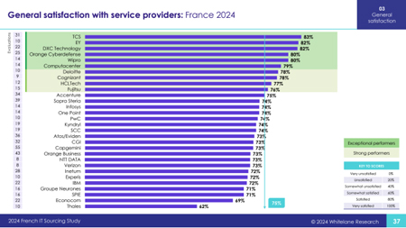 Satisfaction générale : TCS, EY, DXC Technology, Orange Cyberdefense, Wipro, Computacenter