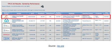 Alibaba Cloud, la branche data intelligence et technologie numérique d’Alibaba Group, a établi un nouveau record mondial avec sa base de données relationnelle cloud-native PolarDB dans le benchmark TPC-C. Développé par le Transaction Processing Performance Council (TPC), TPC-C évalue les performances des systèmes de traitement des transactions en ligne (OLTP).