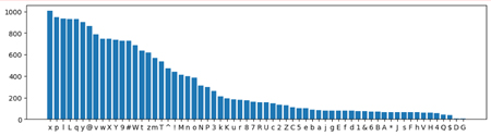 Le graphique ci-dessous répertorie tous les symboles présents dans 1000 mots de passe générés par ChatGPT. Il apparaît clairement que presque tous ces mots de passe contiennent les symboles x, p, l, L .... Cela contredit l’aspect aléatoire des mots de passe ainsi générés.