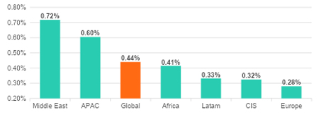 Selon les données recueillies par le Kaspersky Security Network, le Moyen-Orient, l’Asie-Pacifique et l’Afrique sont les régions les plus concernées par les attaques par ransomwares, devant l’Amérique latine, l’Asie centrale et l’Europe. Au niveau mondial, entre 2023 et 2024, la part des utilisateurs touchés par ces attaques a augmenté de 0,02 point de pourcentage, pour atteindre 0,44 % du total des cyberattaques enregistrées. Si ce pourcentage apparaît faible, cela s’explique par le fait que les ransomwares ne sont généralement pas distribués à grande échelle, mais privilégient généralement des cibles hautement stratégiques à forte valeur ajoutée, ce qui réduit le nombre total d’incidents.