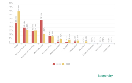 En 2025, selon Kaspersky, près de 8 500 utilisateurs de petites et moyennes entreprises (PME) ont été victimes de cyberattaques où des logiciels malveillants ou indésirables se faisaient passer pour des outils de productivité en ligne reconnus. D’après les fichiers malveillants et indésirables observés, les leurres les plus courants concernaient Zoom et Microsoft Office, tandis que les nouveaux services basés sur l’IA comme ChatGPT et DeepSeek sont de plus en plus exploités par les attaquants. Kaspersky publie la liste des menaces et des bonnes pratiques pour aider les PME à y faire face.
