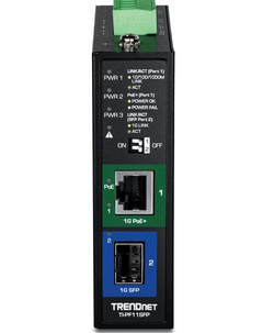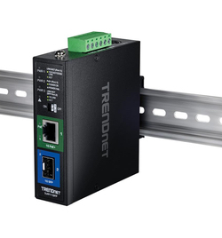 Ce convertisseur de média PoE+ est certifié IP50 et doté de composants renforcés conçus pour les environnements industriels extrêmes. Il fonctionne à des températures comprises entre -40 et 75 °C (-40 et 167 °F). Les commutateurs DIP en façade contrôlent le transfert de défaut de liaison (LFPT) et permettent de passer l’appareil en mode commutateur/convertisseur. La conception robuste de ce convertisseur de média industriel PoE+ le protège également des chocs, des chutes et des vibrations.
