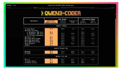 Construit sur une architecture Mixture-of-Experts (MoE), le modèle open source Qwen3-Coder-480B-A35B-Instruct, qui totalise 480 milliards de paramètres mais n’en active que 35 milliards par jeton, allie efficacité et performance. Il obtient des résultats compétitifs face aux modèles state-of-the-art (SOTA) les plus avancés, selon les principaux benchmarks en codage agentique, navigation web et utilisation d’outils.