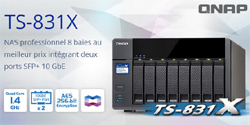 QNAP® Systems, Inc. a annoncé aujourd’hui la sortie des NAS 8 baies TS-831X, une gamme notamment équipée de 2 ports 10GbE SFP+ intégrés pour exploiter nativement les réseaux très haute vitesse 10GbE au sein d’une solution NAS économique. La gamme TS-831X supporte également VJBOD (JBOD virtuel) afin de proposer un moyen économique d’exploiter l’espace inutilisé du NAS pour étendre la capacité de stockage d’autres NAS QNAP. En tirant profit du support natif de Container Station dans les modèles TS-831X, les entreprises pourront rapidement développer et déployer des applications de l’Internet des Objets (IdO) pour générer de nouvelles opportunités de marché.