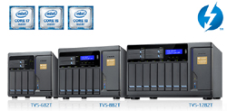 Le stockage a toujours été un challenge pour les studios d’édition vidéo qui doivent traiter chaque jour d’immenses volumes de médias en haute résolution. Dotée de la récente 6e génération de processeurs Intel® Core™ i3/i5/i7, la nouvelle gamme NAS TVS-x82T Thunderbolt™ 2 offre des performances inégalées pour accroître la productivité, grâce à la combinaison des SSD SATA au format M.2 ou 2,5" et de la fonction cache SSD, permettant d’accélérer l’édition vidéo et autorisant une bande passante maximale de 20 Gb/s afin de gérer le transfert et l’affichage simultané de vidéos 4K. Combinées à sa grande capacité de stockage extensible, ces fonctions font de la gamme TVS-82T la meilleure solution pour héberger des téraoctets de contenus multimédia en haute résolution et pour les sauvegardes critiques des studios d’édition vidéo.