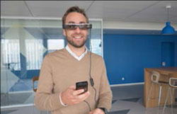 Ces lunettes de haute technologie permettent de visualiser, via une application dédiée, des espaces en 3D. L’utilisateur sélectionne le revêtement de sol de son choix parmi 100 coloris Tapiflex et le visualise en situation dans des pièces prédéfinies. Ce procédé s’opère grâce à un écran virtuel situé au centre du champ de vision de l’utilisateur. Ce dernier active les différents menus de sélection présents sur l’écran virtuel grâce à une télécommande tactile.