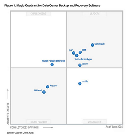 Pour Gartner, cette édition du Magic Quadrant for Data Center Backup & Recovery est une mise à jour du Magic Quadrant for Enterprise Backup Software and Integrated Appliances publié en Juin 2015. Ce changement de nom et de critères répond aux demandes des clients de Gartner de se concentrer davantage sur les logiciels de sauvegarde et de récupération dédiés aux PME et grands comptes. Ces logiciels doivent protéger les workloads des centres de données gérés par des employés.