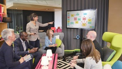 Peu importe où l’on se trouve, dans le hall de l’entreprise, une salle de réunion, ou à la machine à café, l’utilisateur est totalement engagé, de manière agile et instinctive. C’est un nouvel outil du quotidien qui offre des possibilités infinies.