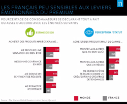 Les consommateurs achètent des produits haut de gamme pour des raisons rationnelles et émotionnelles, mais ces dernières résonnent plus fortement dans les pays émergents. 52% des répondants mondiaux sont plutôt ou fortement d’accord pour dire qu’acheter des produits haut de gamme leur permet de se sentir bien, avec des taux encore plus élevés en Inde (78%), en Chine (66%), en Afrique / Moyen Orient (57%) et en Asie du Sud-Est (53%). A l’inverse, ce sentiment est relativement peu partagé en Europe de l’Ouest, et notamment en France (29%).