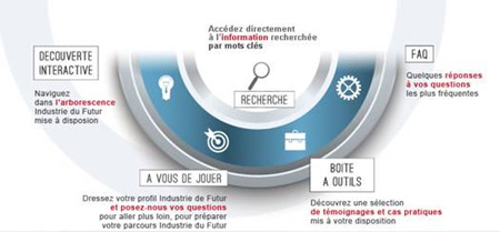 On y trouve des vidéos pédagogiques sur l’Internet des objets, les réalités virtuelle et augmentée et les objets connectés, des témoignages d’entreprises déjà engagées dans une démarche de modernisation de leur outil de production ou de leur organisation, des fiches pratiques sur la cybersécurité, l’openinnovation et différents procédés innovants, ou encore les Zooms technos Industrie du Futur, produits par le Cetim.