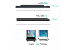 À titre de comparaison, FITCAZE est environ 30% plus léger et 20% le fine que la coque-batterie d’Apple tout en étant aussi puissante. L’objectif est de proposer un design attractif, unique, tout en apportant plus de fonctionnalités. "Fitcaze ne modifie pas la prise en main de votre iPhone. Elle le protège comme une coque normale, mais permet de le recharger n’importe-où" Brian BERGEL.