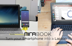 Le PC de bureau est depuis 2008 détrôné par le PC portable et depuis 2012 les ventes de PC déclinent progressivement dans le monde selon Gartner. Les smartphones sont de nos jours plus utilisés que les ordinateurs portables traditionnels ; le Mirabook incarne véritablement cette mutation qui fait du smartphone un ordinateur portable à part entière.. Cette extension est une coquille d’ordinateur portable de haute qualité, avec un corps en aluminium, incroyablement fin et léger, personnalisable, avec un écran IPS 1080p de haute qualité, un pavé tactile, un emplacement de stockage pour carte SD et une batterie puissante qui charge le téléphone en même temps qu’on utilise Mirabook.