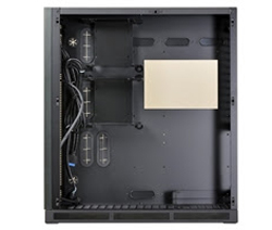 Le PC-O11WGX aux couleurs ROG a été conçu à partir des retours des utilisateurs du Lian Li PC-O11. Il était évident d’optimiser l’arrière du boitier pour les disques, avec désormais trois emplacements 2,5”. Cela permet de mieux mettre en avant le watercooling, et avec de la place pour trois radiateurs de 360mm (ou trois ventilateurs de 120mm), il y a assez de place pour n’importe quel challenge thermique dans le PC-O11WGX.