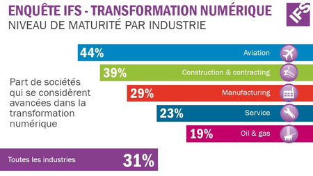 IFS, l’éditeur de solutions de gestion d’entreprise, présente les résultats de Digital Change Survey, son étude sur la transformation numérique réalisée auprès de 750 décideurs dans 16 pays. Celle-ci évalue la maturité des entreprises des différents secteurs (production, pétrogazier, aéronautique, construction et services) sur leur transformation digitale.